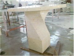 » 供应异形石桌雕刻,S型拉丝桌柱雕刻,大理石石桌,黄色石桌