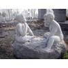 供应人物雕塑,童子下棋雕塑,白砂岩雕塑,托腮思索雕塑