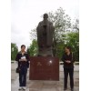 图中显示的是赵斌工艺师l雕刻的贡嘎机场主席站像,作品原稿是依据沈阳中山广场的毛主席雕像为蓝本,由鲁迅美术学院雕塑系设计, 1970年落成,是唯一被选入中国城市雕塑五十年大型画册的“文革”时期的领袖像。后来,1976年毛主席纪念堂广场前后的工农兵群雕曾借鉴了沈阳的群雕。雕塑的原稿由中央美术学院雕塑系主任,雕塑系教授曹春生(1964年毕业于前苏联列宾美术学院。曾任、全国城市雕塑艺术委员会秘书长、中国雕塑学会秘书长。)白澜生(全国城市雕塑建筑指导委员会副秘书长、中国雕塑学会副秘书长)创作。由我们用房山一级汉白玉再创作雕刻,有瓷器光泽。(我们与中央美院合作办厂,为中央美院的教学基地,现在必须有《中央美院介绍证明信》才能开采外运)毛主席石雕像包括基座在内高12.26米、(寓意毛主席诞辰日)。重35吨。雕像净高7.1米,80吨重的整块石质地优良,无白斑,无杂色。另外我们还有雕刻的汉白玉毛泽东站坐和半身像;寿星,白求恩,校园雕塑人物石雕,是清华大学美术学院曾成钢教授等专家的作品。