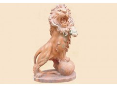 供应动物雕刻,晚霞红工艺,西方石狮雕刻,圆形风水球雕刻