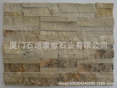- 产品特点:文化石经过亿万年地壳运动形成了独具特色的板状构造——片理。片理不仅易于劈分,且劈分后的岩石表面纹理丰富,可以制作成片状,用于镶嵌墙面。而且这类石材的结构细密,层状片理决定了它有很好的硬度,耐磨率介于花岗石与大理石之间,且具有吸水率低、耐酸率高、不易风化等特点。