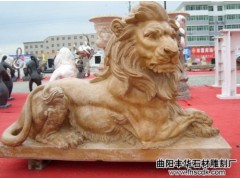 供应动物雕刻,石雕狮子,黄色石狮,石雕狮子摆件,丰华石材