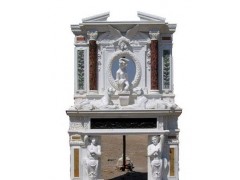 壁炉、栏板、罗马柱、浮雕、花钵、水钵。西方人物