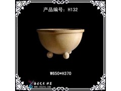 供应米色花钵,圆形花钵雕塑,W650H370,砂岩花钵工艺