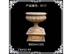 » 供应异形花钵雕塑,米白砂岩花钵,W900H1200带底座