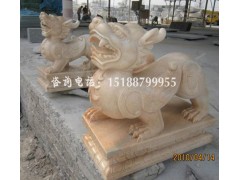 » 供应麒麟对狮雕刻,黄色大理石雕塑,东方麒麟雕塑,吉祥动物雕塑