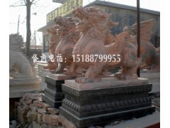 供应动物雕刻,吉祥物雕塑,东方麒麟狮雕刻,晚霞红雕塑工艺