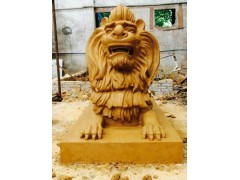 供应雄狮雕刻工艺,黄色石狮雕塑,动物雕刻,海逸雕塑