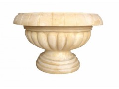 » 供应浮雕花钵工艺,米黄砂岩石雕,艺术花钵花盆,海逸雕塑
