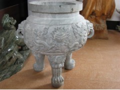 » 供应高档石鼎雕刻,火烧面石鼎艺术,浮雕双龙戏珠鼎,九龙壁工艺