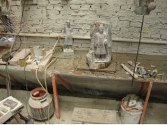 供应工厂车间加工一角展示,乳化石人物雕刻,古代将士雕刻