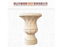 » 供应米白砂岩花钵,线条浮雕花钵,异形花钵雕刻,园林花钵