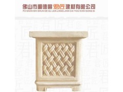 供应米白砂岩花钵,线条浮雕花钵,方形花钵雕刻,园林花钵