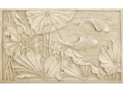 » 供应米白砂岩浮雕板,浮雕荷叶工艺,室外装饰浮雕板,均利石材