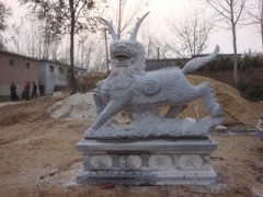 » 供应动物雕刻,麒麟独角狮雕刻,灰砂岩雕塑,心想事成雕塑