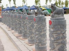 » 供应动物雕刻,十二生肖柱雕刻,黑色石柱工艺,福运石雕