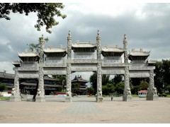 抱鼓石一般是指位于宅门入口、形似圆鼓的两块人工雕琢的石制构件,因为它有一个犹如抱鼓的形态承托于石座之上,故此得名。抱鼓石民间称谓较多,如:石鼓、门鼓、圆鼓子、石镙鼓、石镜等等。在传统民宅大门前很常见(如北京四合院的垂花门、徽州祠堂的版门等等)。在传统牌楼建筑(如牌坊、棂星门)中也有类似抱鼓石的夹杆石(也有称门挡石的),它是牌楼建筑所特有的重要构件,主要是起稳固楼柱的作用。宅门抱鼓石是门枕石的一种。 传说圆形墩是武将门前所用,古时战胜归来的将军把战鼓放在门前,以耀功绩。我们雕刻的仿清代门墩雕刻精美,寓意丰富,它既是建筑结构又是石雕艺术品,同时也是民俗生活的写照。 雨果在《巴黎圣母院》中写道:“人类没有任何一种重要的思想不被建筑艺术写在石头上。”《西洋美术史》上也这样认为:当我们想起过去的伟大文明时,我们有一种习惯,就是应用看得见,有纪念性的建筑作为每个文明独特的象征。园林石雕是“凝固的音乐”他有强烈的暗示作用,对社会心理的作用非常大,建筑史可以与人对话的,它能表现中华民族的风貌。吴冠中先生参观我厂的众多牌坊后说:“一座牌坊就是一座中国古建筑的标本,代表着中华民族的传统文化。”