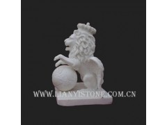 供应动物雕刻,石雕狮子,狮子戏球,白色石狮,狮子摆件