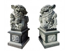 » 供应麒麟对狮雕刻,青石雕刻工艺,麒麟赛球雕刻,浮雕葫芦底座