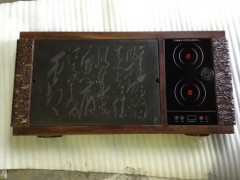 供应符复合型石茶盘,木材和石材混合茶盘,浮雕字乌金石茶盘
