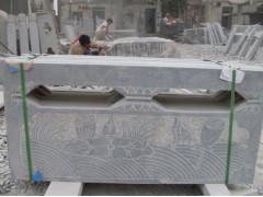 » 供应市政栏板雕塑,荷塘莲花苞待放浮雕,灰砂岩石栏板,艺术栏板
