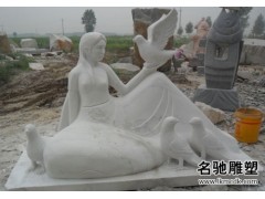 » 供应人物雕塑,女性坐姿雕刻,鸽子石雕艺术,白色大理石雕刻
