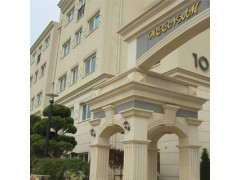 » 供应住宅区外墙工程案例,米白色幕墙石材,异形门廊罗马柱装饰