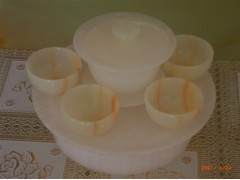 » 供应石雕工艺品,玉石雕刻茶盘工艺,白色茶盘茶具,汉白玉雕刻