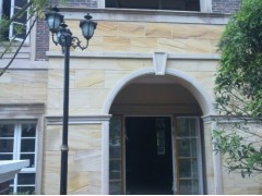 » 供应工程案例,外墙工程案例,黄色大理石干挂,白色弧形门套