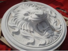 » 供应圆形浮雕板,西方狮子头雕塑,汉白玉雕塑,墙面挂饰工艺