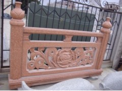 供应红色防护栏板,花岗岩栏板,雕刻牡丹花栏板,异型栏板工艺