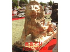 供应动物雕刻,西方雄狮雕塑,晚霞红雕塑,大理石雕塑工艺