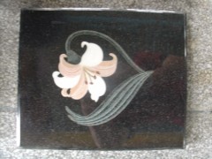 » 供应日式墓碑,粉色水仙花镶嵌,黑色墓碑,绿色叶子镶嵌