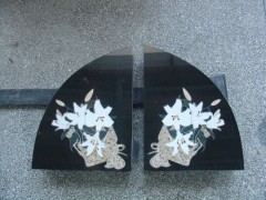 供应日式墓碑板,扇形墓碑板,黑色墓碑板,白色水仙花镶嵌