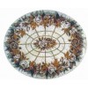 供应石制工艺品,椭圆形砂岩工艺,彩色花朵花纹雕刻,艺术砂岩