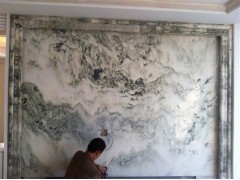 » 供应工程案例,居家客厅装饰案例,天然玉石背景墙,山水画背景墙