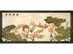 » 供应石雕工艺品,彩色玉石拼画,年年有余拼画,荷塘鲤鱼拼画