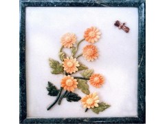 » 供应石雕工艺品,向阳蝴蝶花拼画,黄色玉石拼画,玉石装饰品