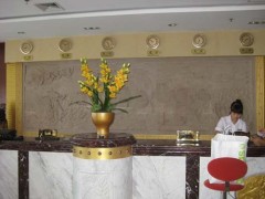 供应工程案例,酒店工程案例,酒店前台背景浮雕,砂岩浮雕