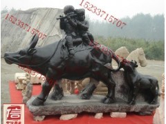 供应动物雕刻,园林景观动物雕塑,牧童吹笛子雕塑,黑砂岩雕塑