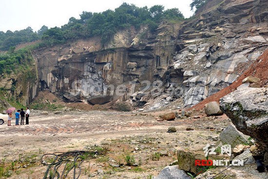 (用火药炸山开采麻石,留下满地碎石,易引发地质灾害。)