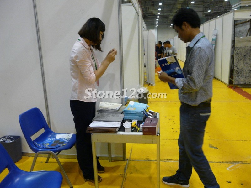 大中华石材商客服为到来客商介绍