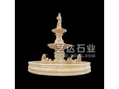 供应喷泉石雕,双层喷泉,人物喷泉,米黄色喷泉雕刻