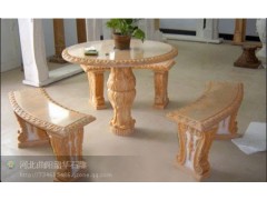 供应艺术石桌椅,黄色大理石石桌椅,抛光面石桌椅雕刻