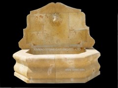 供应艺术喷泉石雕,黄色喷泉雕刻,浮雕狮头工艺