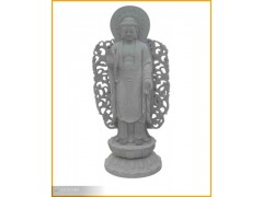 供应佛像雕刻,灰色佛祖石雕,镂空背景雕刻,庙宇装饰,锦云石材