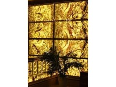 供应工程案例,黄色透光背景墙雕刻,酒店装饰,熙江石材