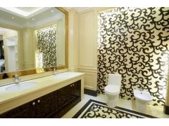 供应工程案例,米黄色洗手台面装饰,黑色纹背景墙装饰,一凡石材