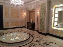 供应工程案例,别墅室内米色背景墙装饰,花色地板装饰,一凡石材