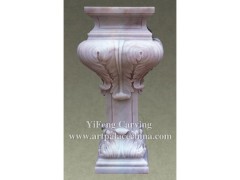 供应精美底座雕刻,粉红色大理石雕刻,园林花钵底座